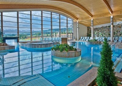 Agua rica en sulfuros, sílice, potasio, calcio, magnesio, hierro, cobre, zinc, manganeso, cloro, sodio y lit. La temperatura elevada y la reacción ligeramente ácida facilitan la absorción de estos valiosos ingredientes por el organismo. Los baños reducen los niveles de estrés, facilitan la relajación y restablecen el equilibrio psicofísico, mejoran la presión arterial y el metabolismo, favorecen la pérdida de peso, eliminan los dolores de cabeza y el insomnio, aceleran la convalecencia, eliminan las enfermedades e imperfecciones de la piel, alivian los dolores musculares y articulares, reducen el tono muscular.
